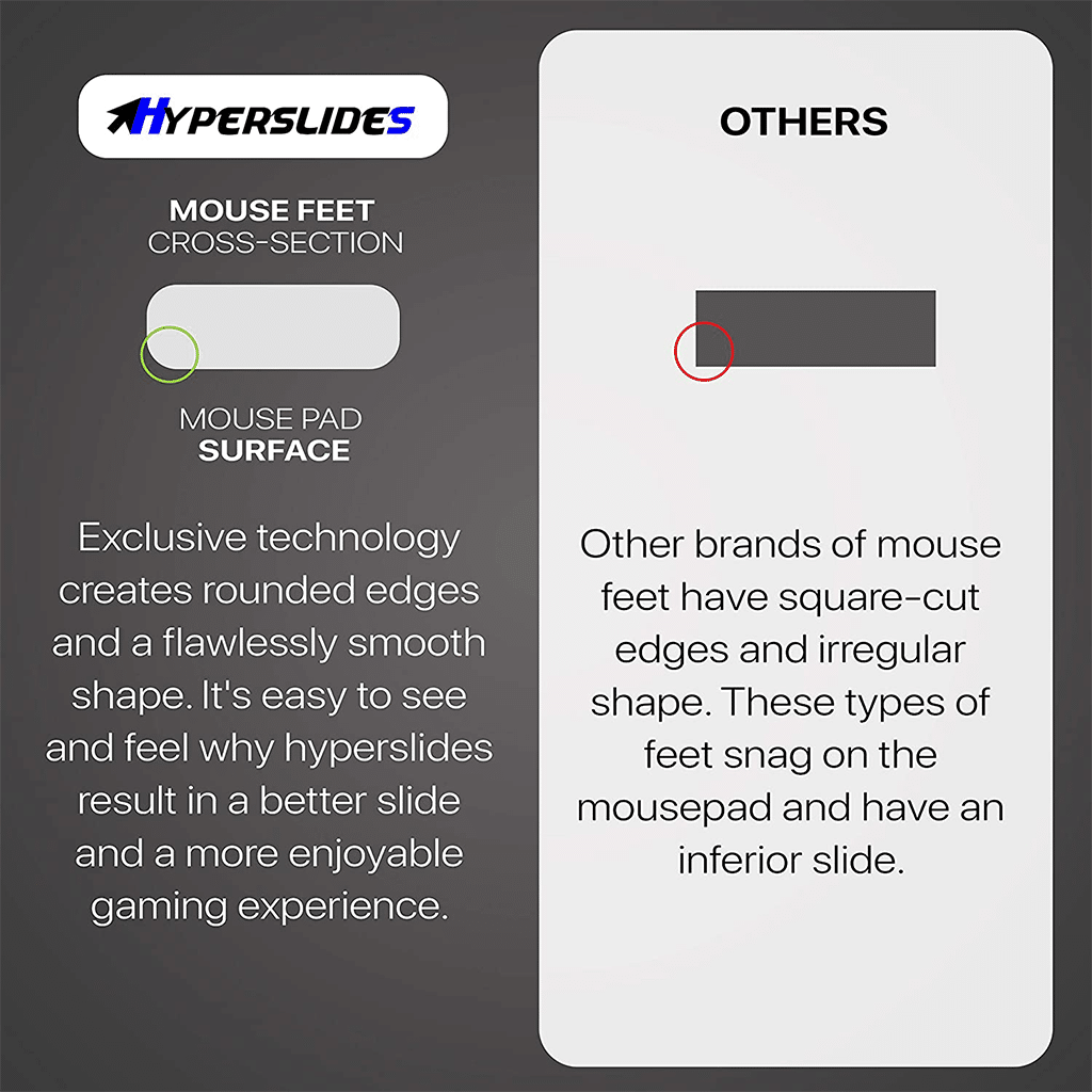 2 Sets of Hyperslides Rounded Curved Edges Mouse Feet, Mouse Skates for Logitech G Pro Wireless Gaming mouse
