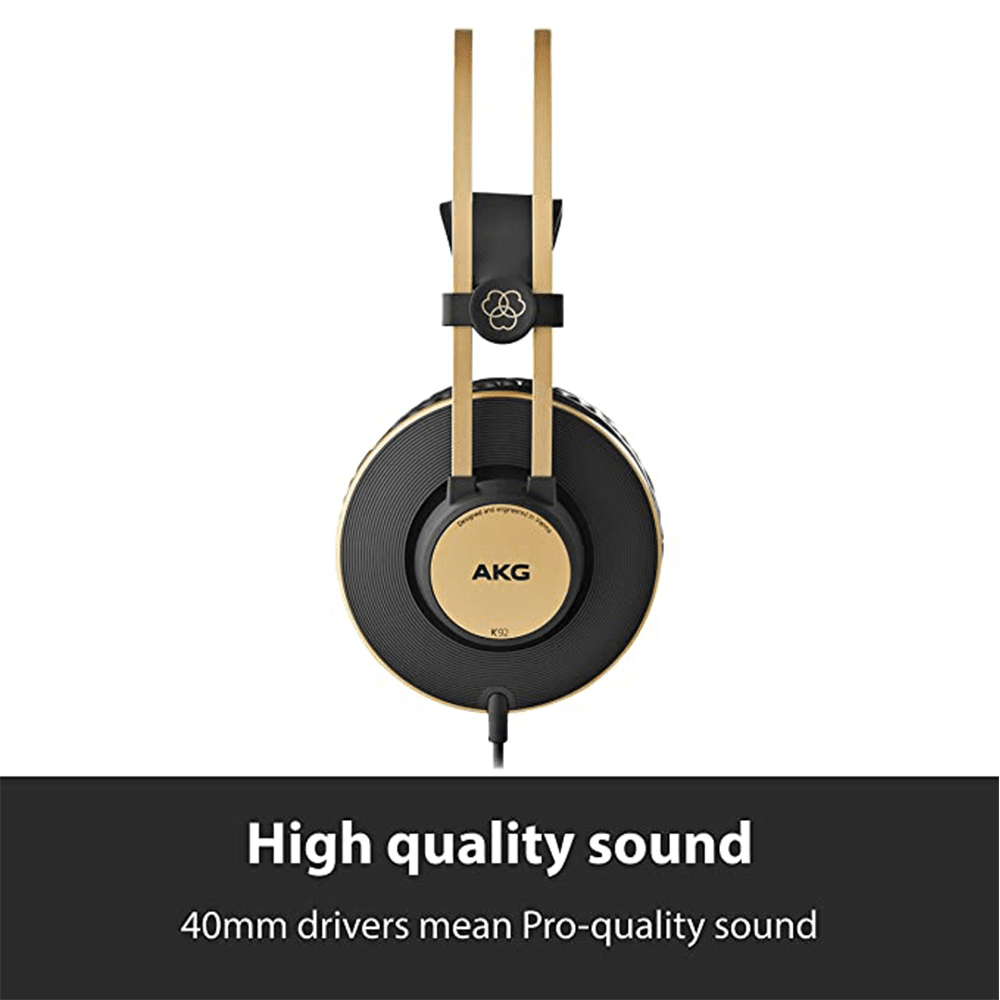 Pro-quality sound meets style and affordability with the AKG K92 over-ear, closed back headphones. Professional 40mm drivers give you an extended audio bandwidth for accurate monitoring.