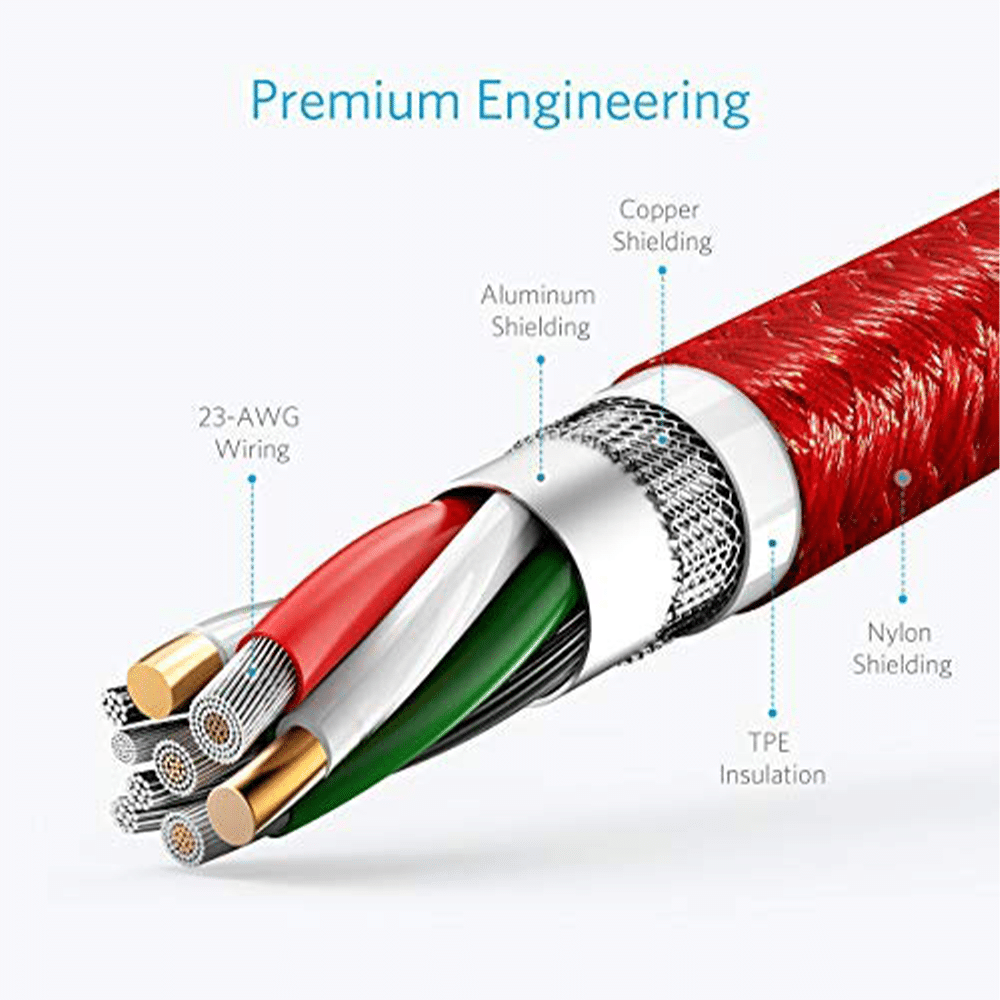 A double-braided nylon exterior prevents tangling and adds another layer of durability.