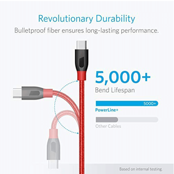 PowerLine+ is reinforced with aramid fiber to give incredible strength. It boasts a bend lifespan over 5x higher than other USB cables, making it possibly the most reliable option for Apple device charging.