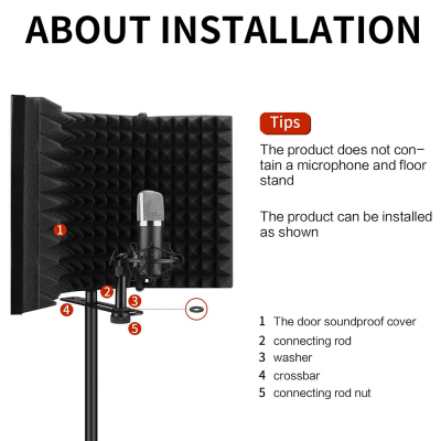 This microphone isolation shield kit is Great for professional vocal / acoustic recording and podcasting sound booth.It can be installed on a stand with 3/8" and 5/8" screw connectors.