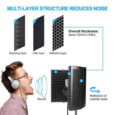 - ELIMINATE INTERFERENCES: The inside of the microphone shield is made of absorbent cotton which can reduce sound reflection when recording, providing the perfect atmosphere for all of your professional or amateur live recordings and helping you ensure clear, dry sound no matter where you are.