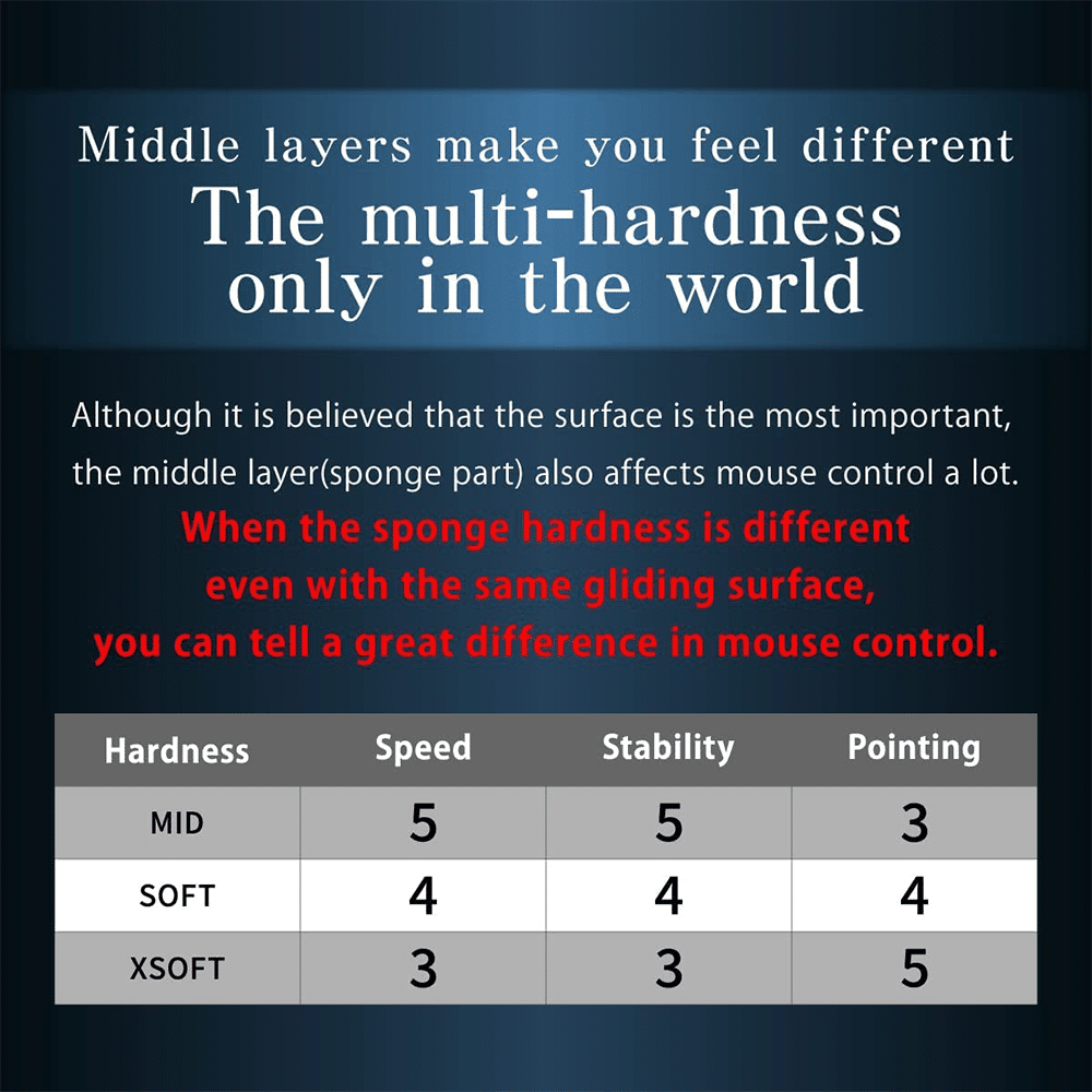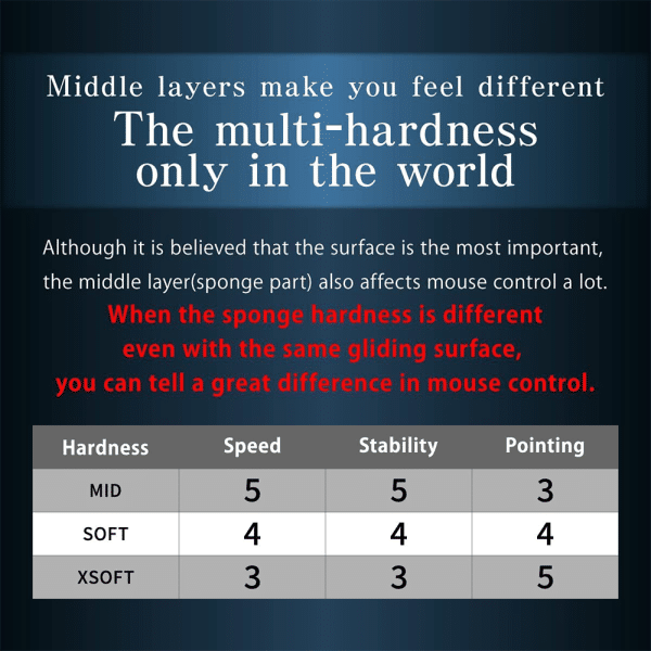 - Hardness : XSOFT. It is especially recommended for games with a lot of mouse movement. Exceptional operation feeling.