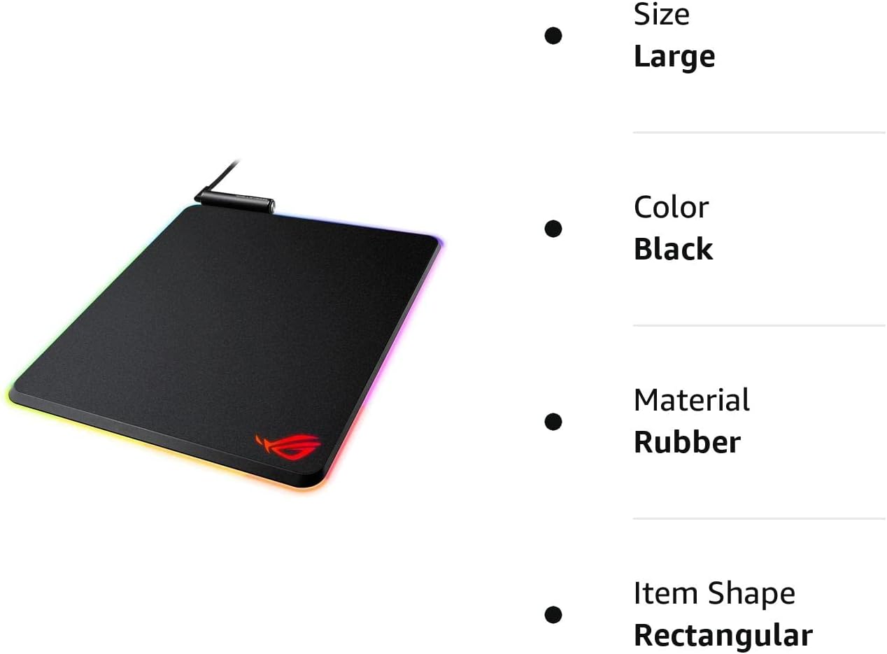 Home Products Gaming Gear Mousepads Asus Rog Balteus RGB Gaming Mouse Pad with 15-zone Aura Sync Lighting, Portrait Hard Surface,USB Passthrough & Nonslip Rubber Base