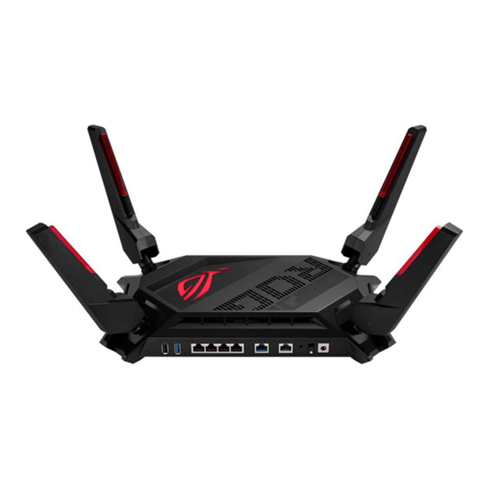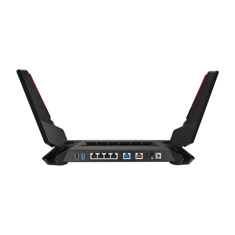 GT-AX6000 Dual-Band WiFi 6 (802.11ax) Gaming Router, Dual 2.5G ports, enhanced hardware, WAN aggregation, VPN Fusion, Triple-Level Game Acceleration, free network security and AiMesh support DON'T STOP THE GAME The futuristic ROG Rapture GT-AX6000 gaming router lets you connect more devices, and upgrades your gaming experience to the next level. With WiFi 6 speeds up to 6000 Mbps, it’s always primed for the biggest battles. The awesome styling, with new-look red and black detachable antennas and fully customisable ASUS Aura RGB lighting effects, makes GT-AX6000 a router that demands to be seen! Flexible network ports functions Dual 2.5G Network Ports GT-AX6000 has dual 2.5 Gbps Ethernet ports that support link aggregation and load balancing, giving you the flexibility to give massive bandwidth to connected devices or take advantage of ultra-high-speed internet connections. Beyond Performance GT-AX6000 is powered by a 2.0 GHz quad-core 64-bit CPU, giving it the performance to handle even the most demanding gaming network. It delivers maximum network throughput by 18%* for lightning-fast, accelerating data transfers and optimizing your gaming experience. Expanded Coverage with RangeBoost Plus ASUS RangeBoost Plus is the latest, most powerful version of our renowned RangeBoost technology, which can improve the coverage and WiFi performance significantly compare to other models without RangeBoost. By using a next-gen flagship Broadcom WiFi chipset and CPU, combined with ASUS RF technology and other exclusive ASUS technologies, RangeBoost Plus leverages multiple upgraded ASUS features that improve WiFi signal range and overall coverage by up to 38%*. Whole-Home coverage ASUS AiMesh gives you the flexibility to create a true whole-home WiFi network. You can put your old ASUS AiMesh-compatible router to good use as a mesh node to broaden your network's coverage to eliminate dead spots, and bring superfast, reliable WiFi to your entire home. Triple-level Game Acceleration GT-AX6000 boosts your gaming traffic every step of the way, from your PC all the way to the game server. The exclusive triple-level game acceleration stabilises your connections to prevent jitter, reduce lag, lower ping and increase speed for amazing gaming experiences. Game without Boundaries VPN Fusion lets you run both a VPN and an ordinary internet connection — simultaneously! So even if other network users need to use a VPN, you can still enjoy maximum gaming speeds. Boost your game with one click Minimise lag and latency for mobile gaming with just a tap on the ASUS Router app. 3-Step Port Forwarding Join your clan smoothly and quickly GT-AX6000's OpenNAT feature, with only three steps needed to configure port forwarding. Say goodbye to frustrating and complicated procedures! Game console Prioritisation GT-AX6000 plays great with any game consoles, including PS5®, Xbox X® and Nintendo Switch®. Instantly prioritise a console by connecting it to the dedicated Gaming Port. No complex configuration is needed, just connect your console to the special LAN-1 port for a fast, stable connection that's always at the head of the queue. Complete Security for Everyone For total peace of mind, GT-AX6000 includes ASUS AiProtection Pro, including the latest WPA3 security protocol and advanced Parental Controls. With automatic, regularly updated security signatures to protect all your devices and personal data from internet threats. Make Free WiFi Secure, Wherever You Are The free public WiFi you find in coffee shops, restaurants, hotels, airports and so on is rarely secure. ASUS Instant Guard uses VPN technology to create a secure data tunnel to your GT-AX6000, adding rock-solid security to any public WiFi connections you use.Specifications:-