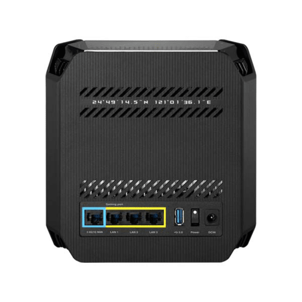 Gaming Mesh System Experience the ideal all-around WiFi solution with the latest edition of the Rapture series. The ROG Rapture GT6 is the first tri-band ROG mesh WiFi system and is designed to deliver amazing experiences through the latest network technology. This next-gen gaming mesh WiFi system is your high-tech companion for your internet journey. Choose Your Style Designed with the spirit of innovation, the ROG Rapture GT6 draws inspiration from the ROG aesthetic and features distinctive hexagonal patterns throughout. It comes in two colors – Black or Moonlight White. The black version's matte finish and sleek angles offer a futuristic appearance. Meanwhile, the Moonlight White Edition offers a pristine and minimalist look. With both versions, ROG’s famous tagline – “For Those Who Dare” – is prominently displayed. More Bandwidth, Massive Capacity Still looking for a WiFi 6 router? Its extreme speed and coverage puts it in a class of its own. With uplink/downlink OFDMA and MU-MIMO, WiFi 6 provides up to 4X more capacity and 2.7X the speed of WiFi 5. It also supports 160 MHz channels to deliver multi-gigabit low-latency connections, increase network capacity and reduce bandwidth congestion. Made For Gamers To enjoy the full speed of your internet, whether connecting to a router or its nodes, the backhaul connection is the most important to ensure maximum WiFi performance throughout a home. With dedicated mesh backhaul and the new technology that improves backhaul capacity and performance, the GT6 provides seamless online gameplay. Expanded Coverage with RangeBoost Plus ASUS RangeBoost Plus is the latest, most powerful version of our renowned RangeBoost technology, which can improve the coverage and WiFi performance significantly compared to other models without RangeBoost. Outstanding WiFi Efficiency In a router this small, most competing devices have a maximum of eight antennas. To prevent signal drops and inconsistent speeds across nodes, the GT6 embeds nine internal antennas at different angles, effectively limiting dead zones. The additional horizontal antenna provides more options for optimal signal direction. Looks Cool, Runs Cool Heat can kill performance. On the top and bottom of the router, there are grills that align perfectly with the heatsink to create the best convective effects and heat dissipation, while side vents employ a classic slash pattern. Comprehensive Network Security Subscription-free AiProtection Pro and Instant Guard can secure your WiFi and protect your devices wherever you are. Ultra-fast Wired Connection With a 2.5 Gbps WAN port, ROG Rapture GT6 empowers you to take full advantage of ultrafast speeds offered by internet service providers for your compatible wired devices. In addition, you can also enjoy up to 2 Gbps wired speeds by using the LAN aggregation feature.Specifications:-