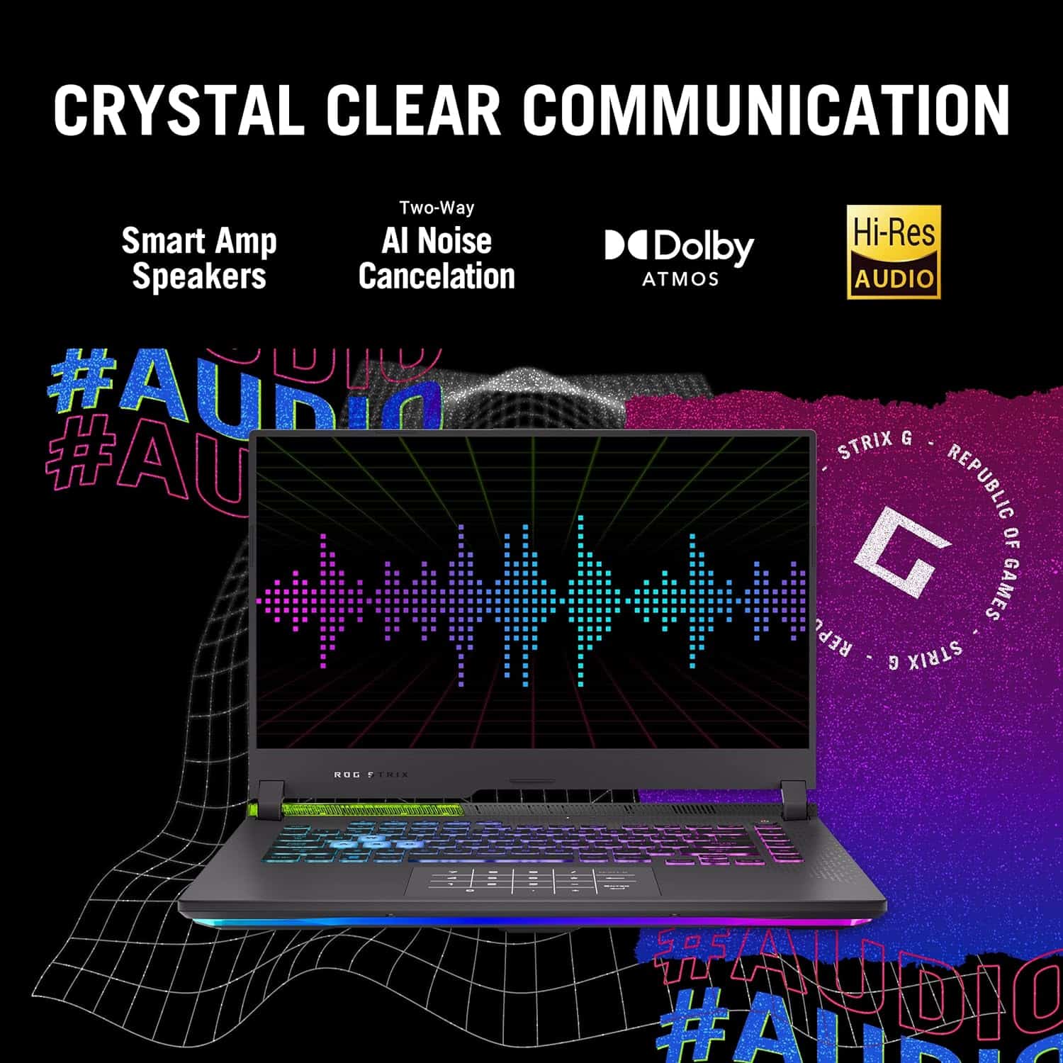 • Smart Amp speakers paired with Dolby Atmos enhance spatial immersion with more nuanced, layered sound effects that you can optimize with specially-tuned preset modes for movies and games.AI Noise Cancelation technology filters both incoming and outgoing audio, ensuring your communications are crystal clear even when there is background noise in the mix.