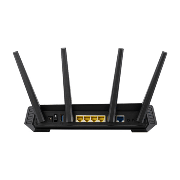 GS-AX5400 dual-band WiFi 6 gaming router, PS5 compatible, Mobile Game Mode, VPN Fusion, lifetime free internet security, Instant Guard, Gear Accelerator, Gaming Port, Adaptive QoS, port forwarding, ASUS Aura RGB The First ROG Strix Router: Built to Win! Get the competitive edge with ROG Strix GS-AX5400, a WiFi 6 gaming router that gives you the fastest, smoothest WiFi gaming connections ever. With ultrafast WiFi speeds up to 5400 Mbps, it's ready for the most intense matches, and with fully customizable ASUS Aura RGB lighting effects, it looks great too. If you take gaming seriously, you need the GS-AX5400! WiFi 6 — The Ultimate Gaming Power Lower Latency WiFi 6 brings incredible speeds and coverage to your gaming network, and supports all your existing devices. Give Your Gaming Top Priority - Gaming Port The dedicated Gaming Port on GS-AX5400 is a special LAN port that automatically prioritizes any wired device connected to it. You don't need to configure it, just connect your gaming PC or console to the gaming port to put it at the head of the queue for a fast, stable connection. Easy port forwarding for different NAT types With easy three-step port forwarding. it's never been simpler to improve your connection speed, lobby wait times, and overall gameplay — even if the host uses different types of NAT! One-Tap Boost for Mobile Gaming Tap to enable Mobile Game Mode in the ASUS Router app on your phone, and you're ready for full-speed mobile gaming, with minimum lag and latency! No Limits! With the amazing VPN Fusion you can run both a VPN and an ordinary internet connection — simultaneously! So even if other network users need to use a VPN, you can still enjoy maximum gaming speeds. Everyone's Protected, Always For total peace of mind, GS-AX5400 includes ASUS AiProtection Pro powered by Trend Micro™, with automatic, regularly updated security signatures to protect all your devices and personal data from internet threats. Make Free WiFi Secure, Wherever You Are The free public WiFi you find in coffee shops, restaurants, hotels, airports and so on is rarely secure. ASUS Instant Guard uses VPN technology to create a secure data tunnel to your GS-AX5400, adding rock-solid security to any public WiFi connections you use. Create a Whole-Home Mesh WiFi System! ASUS AiMesh combines multiple AiMesh-compatible ASUS routers to create a whole-home mesh WiFi system with centralized control. You can use a single SSID for your entire home network, with seamless coverage and no more dead zones!Specifications:-
