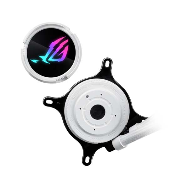 - New water block with 360° rotatable ROG logo and 10+ custom Aura lighting effects