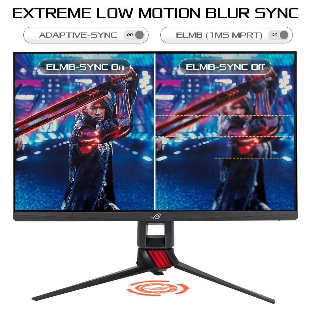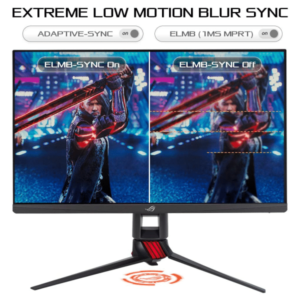 - ASUS Extreme Low Motion Blur Sync (ELMB SYNC) technology enables ELMB together with G-SYNC Compatible, eliminating ghosting and tearing for sharp gaming visuals with high frame rates