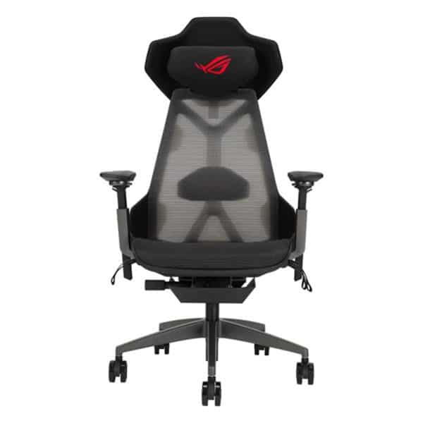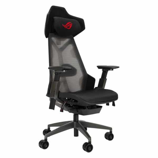 The ROG Destrier Ergo Gaming Chair channels the look of a cybernetic exoskeleton, adding a futuristic edge to any gaming setup.