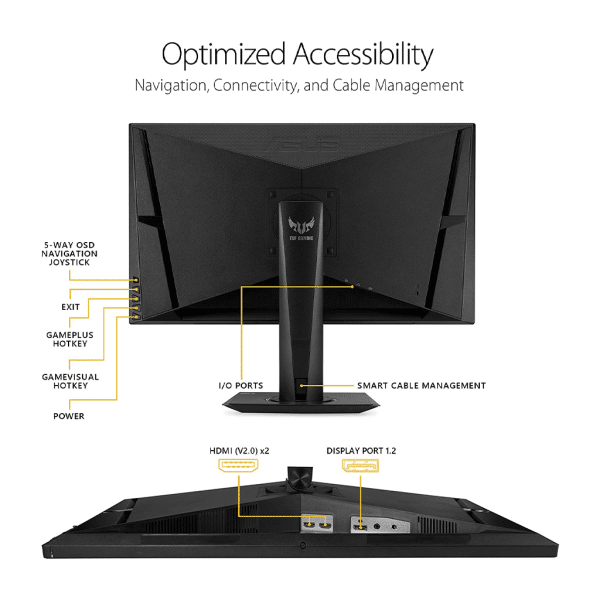 TUF Gaming VG27AQ 165Hz refresh rate decimates lag and motion blur to give you the upper hand in first person shooters, racers, real-time strategy, and sports titles. This ultrafast refresh rate lets you play at the highest visual settings and lets you react instantly to what's onscreen — so you'll get that first strike in.