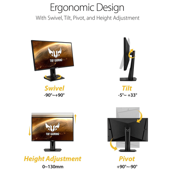 • Marathon ready with ASUS Eye Care technology to minimize eye fatigue and an ergonomic stand with full height/tilt/swivel/pivot adjustments to accommodate any desk