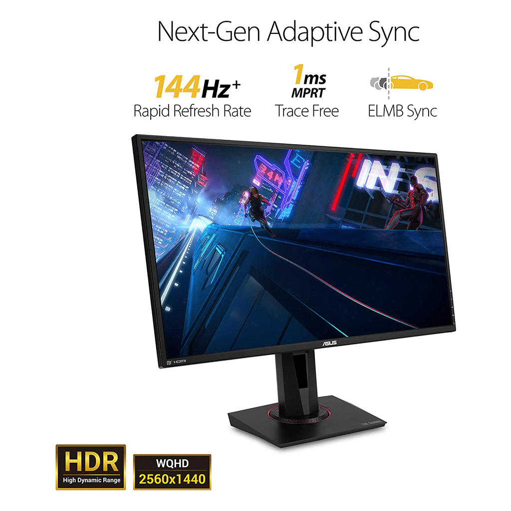 • 27 inch WQHD (2560×1440) IPS gaming monitor with 1ms (MPRT) response time 165Hz refresh rate (supports 144Hz) and G-SYNC compatibility for a tear-free experience