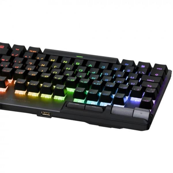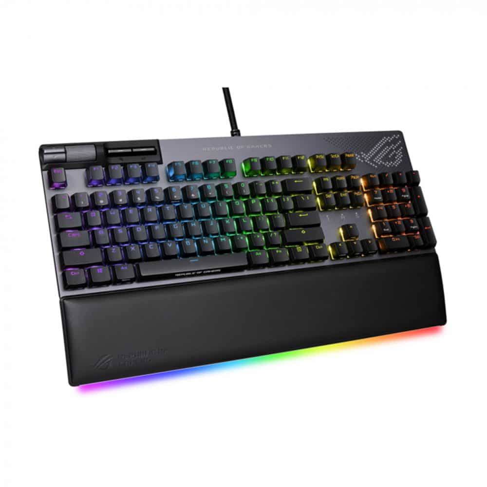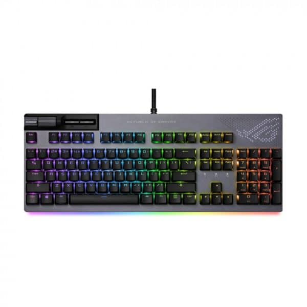 • ROG PBT doubleshot keycaps: Durable keycaps with mid height profile and shorter stems reduce key wobble and feature translucent ROG script
