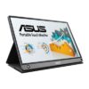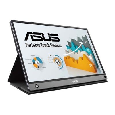 ASUS ZenScreen Touch MB16AMT USB portable monitor — 16 inch (15.6 inch viewable), IPS, Full HD, 10-point Touch, Built-in Battery, Hybrid Signal Solution, USB Type-C, Micro-HDMI, Compatible with Laptops, Smartphones, Gaming Consoles, and Cameras Tap into productivity ASUS ZenScreen™ Touch MB16AMT is a slim and lightweight portable monitor with a large 7800mAh built-in battery designed to take your mobile productivity to new heights. Its responsive and intuitive 10-point touch screen supports swipe, scroll, drag and pinch gestures to help you get tasks done more efficiently. It also delivers a precise touch experience with the innovative ZenScreen Touch app, which lets you display and control apps from your Android phone for a large-screen productivity boost. Hybrid-signal USB-C™ and micro-HDMI connectivity enables displaying content from a wide-range of portable devices, so you can enjoy an expansive view for the best work and entertainment experiences, wherever you go. Intuitive fingertip control With its interactive 10-point touch screen, ZenScreen Touch MB16AMT offers a highly accurate, responsive, and seamless touch experience*, enabling you to edit documents, draw on slides or play games with your fingertips. It is Windows 10 compatible, allowing you to work smarter and more efficiently. Enjoy a larger canvas for your phone apps The exclusive ZenScreen Touch app lets you view and control your Android* phone using the larger screen of ZenScreen Touch MB16AMT. In addition to providing a more comfortable view of any content, this larger scale is perfect for complex tasks such as editing documents, photos, and video. Hybrid-signal USB-C and micro-HDMI connectivity Featuring hybrid-signal USB-C™ and micro-HDMI connectivity, ZenScreen Touch MB16AMT lets you display content from a wide variety of devices, including laptops, smartphones, game consoles, cameras and tablets, providing a more expansive view for work or play. It features an innovative hybrid-signal solution with native support for USB Type-C connections and uses an installed driver to support USB Type-A* connectors for full compatibility. The reversible, any-way-up USB-C design enables quick, hassle-free connection to any device. Built-in speakers & 7800mAh battery With two integrated speakers, ZenScreen Touch MB16AMT enhances your audiovisual experiences, wherever you are. It also features a built-in 7800mAh battery that delivers up to four hours* of operation on a single charge. With its own battery, ZenScreen Touch MB16AMT doesn't drain the power of the connected device. This allows you to work longer or watch more videos while travelling. When it’s time to recharge, Quick Charge 3.0 technology doubles the battery-charging speed compared to general adapters, ensuring minimal downtime. IPS panel with a wide 178° viewing angle ZenScreen™ MB16AMT features a Full HD panel that delivers stunning 1920 x 1080 resolution visuals. It uses IPS technology to give you more flexibility when extending your screen, so you still get superb color and contrast - even from extreme viewing positions. Sleek and ultra-portable with an inspired design ZenScreen Touch MB16AMT is ideal for all road warriors. Even with its premium metal back cover, it weighs just 0.9kg, and its ultraslim 9mm profile ensures it fits easily in any travel bag. Foldable Smart Case An innovative foldable smart case protects ZenScreen Touch MB16AMT from dust and scratches. The case can be folded into a stand to prop the monitor up in either portrait or landscape orientation. ZenScreen Touch MB16AMT also features a smart pen hole on its bottom corner, where you can insert a pen to prop the screen up when not using the smart case. Automatic screen orientation With ASUS DisplayWidget software*, ZenScreen™ Touch MB16AMT can automatically sense its orientation and switch the display between landscape and portrait modes while connecting to the laptop. Landscape mode is ideal for presentations and spreadsheets, while Portrait mode gives you a perfect view of items such as documents, books or websites. ASUS Ultra-Low Blue Light technology ASUS Ultra-Low Blue Light technology protects you from harmful blue light emissions. It offers four blue-light filter settings that are easily accessible through the on-screen display menu. ASUS Flicker-free technology ZenScreen Touch MB16AMT features TÜV Rheinland-certified ASUS Flicker-free technology to reduce screen flicker for a more comfortable viewing experience. This technology helps minimize instances of eyestrain and other potential negative effects that may occur when spending long hours in front of a display.Specifications