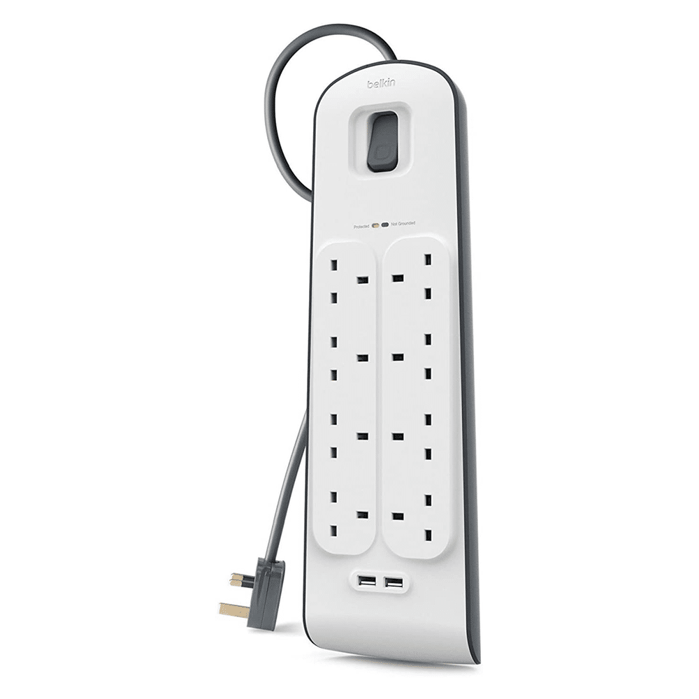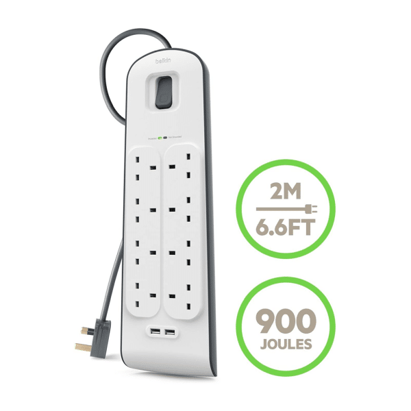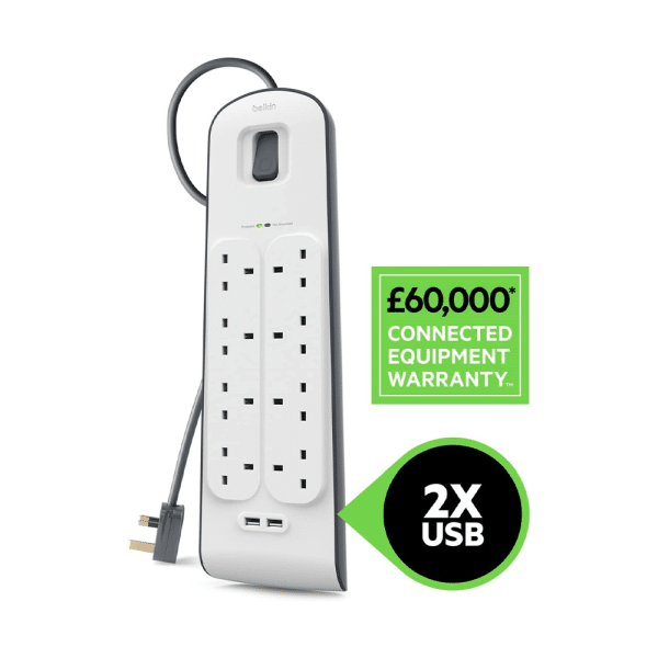 Belkin 8 Way Surge Protection Strip with 2.4 Amp USB Charging – 2M Cord