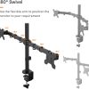 The dual arm setup allows you to work simultaneously on two screens, improving your productivity. Each monitor mount can be rotated independently between portrait and landscape modes for your specific needs. Once dual arms are fully extended, it provides separate working space.