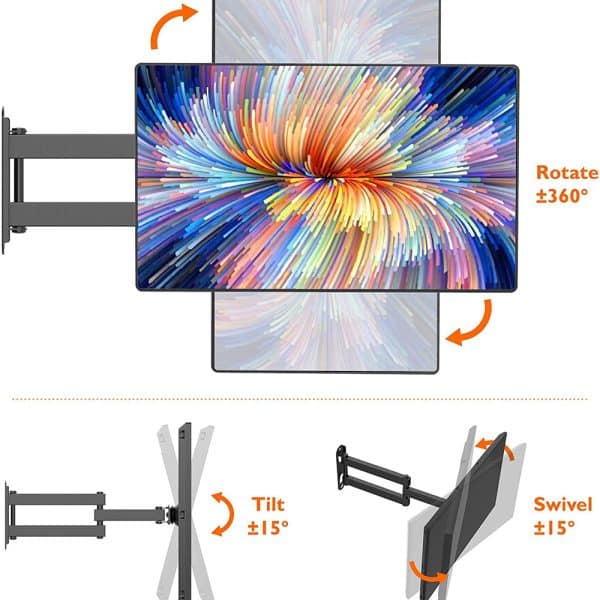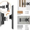 • Extended articulating system: Wide-angle swivel between -180° to +180° meets different viewing needs; extends out up to 15″ from wall and retracts to 1.75″ to save space