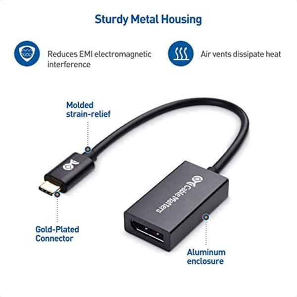 - Rugged metal housing on this lightweight DisplayPort to USB C adapter protects the adapter for frequent use and traveling; Superior construction of the USBC to DisplayPort adapter combines a sturdy metal housing, strain relief on the cable tail and gold-plated connectors. USBC to DP adapter is compatible with new MacBook, MacBook Air, MacBook Pro, iMac, iMac Pro, iPad Pro with Thunderbolt 3 port.