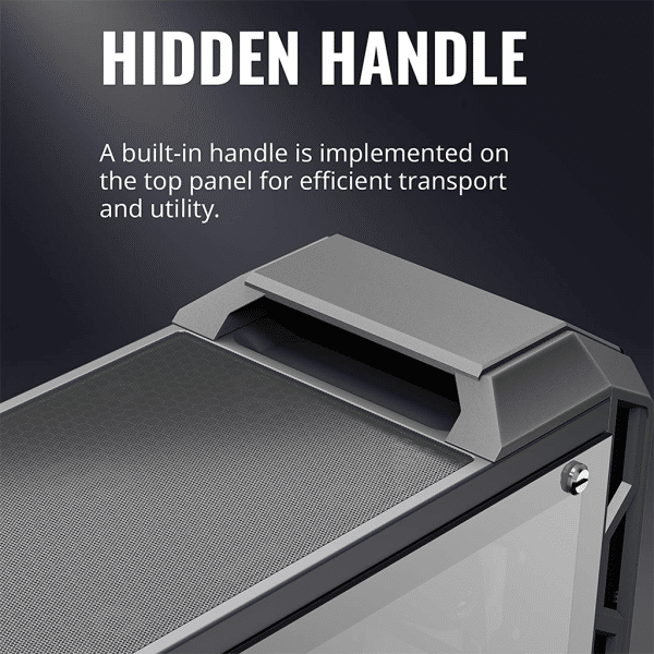 - Tempered glass side panel – Gaming hardware, custom-loop cooling, and the pure pride of the builder is shown in panoramic view through an edge-to-edge tempered glass side panel