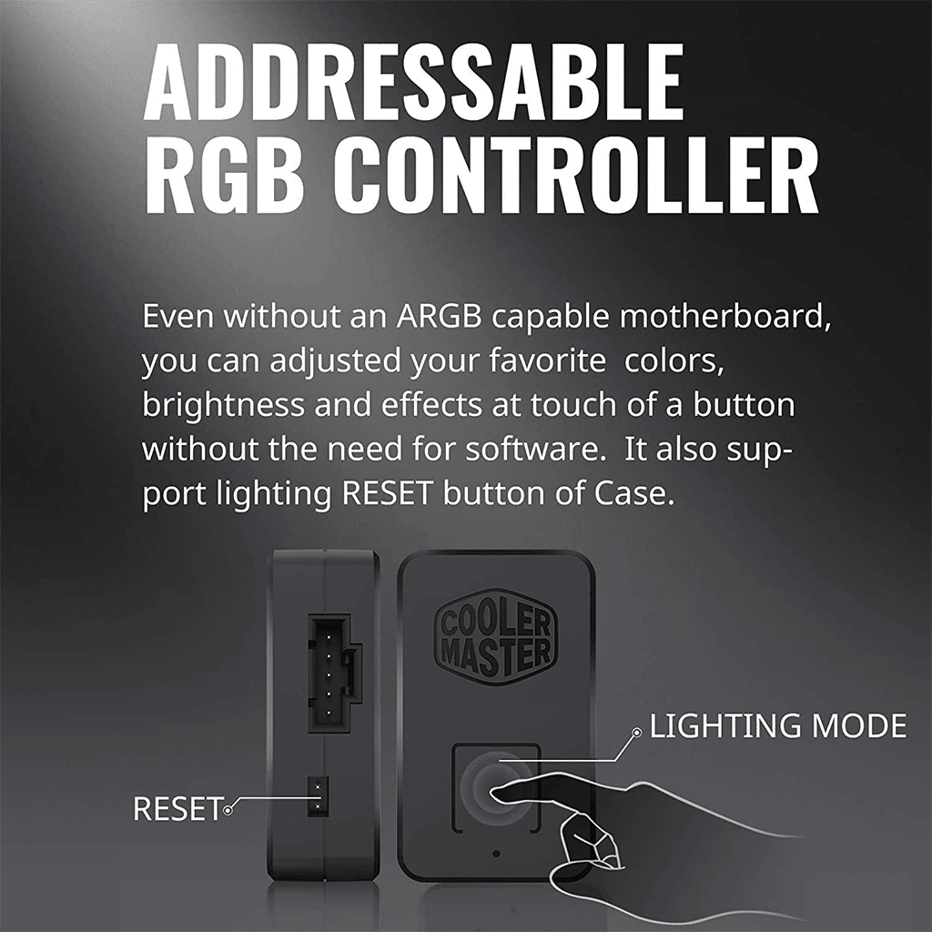 - Even without an ARGB capable motherboard ,you can adjusted your favorit colors,brightness and effects at touch of a button without the need for software.It also support lighting RESET button of case.
