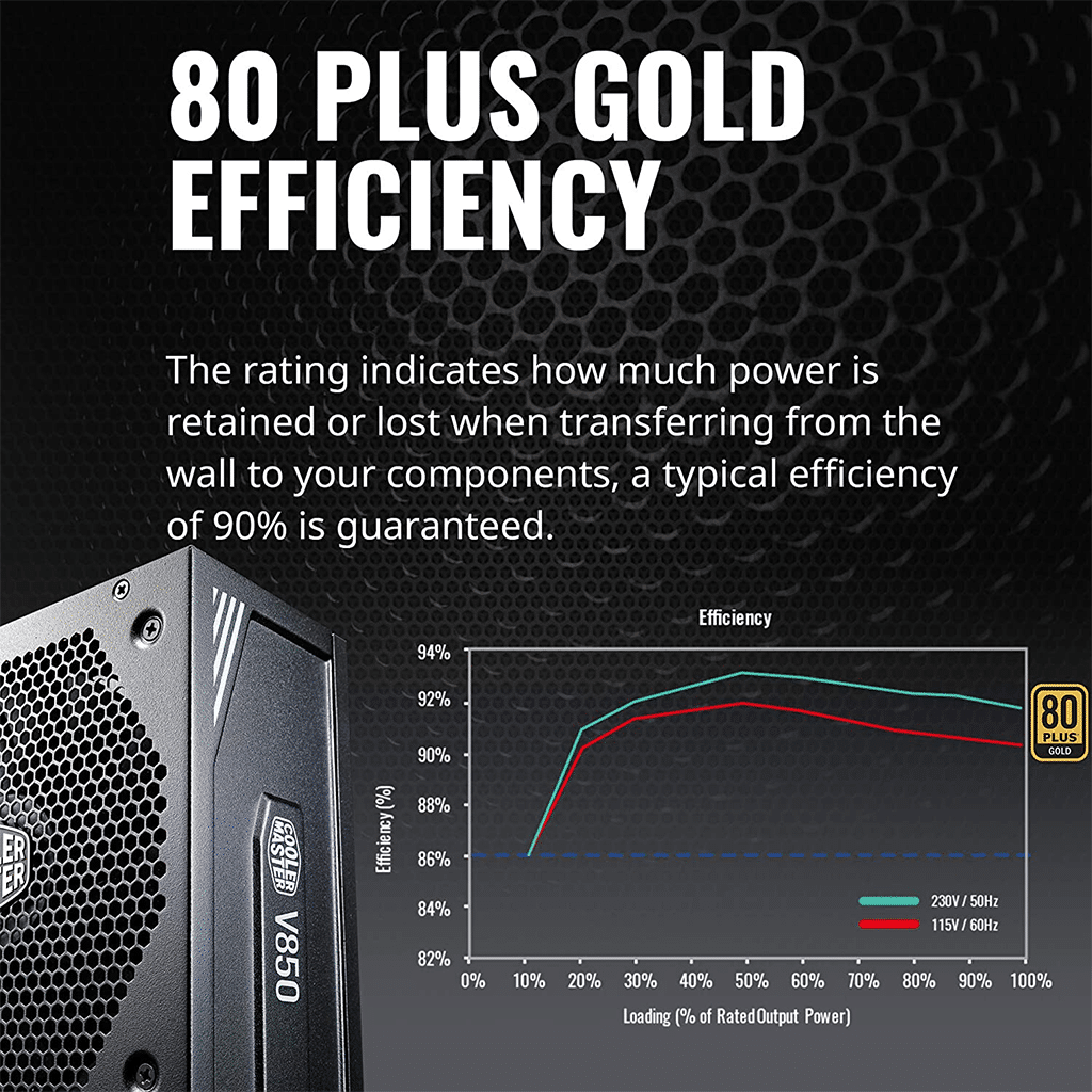 - 80 PLUS Gold Certified : This certification guarantees a typical efficiency of 90% under normal operating conditions.