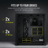 Fits up to 2x 2.5in SSDs and 2x 3.5in HDDs, with relocatable SSD trays that can be moved to the front PSU conver.