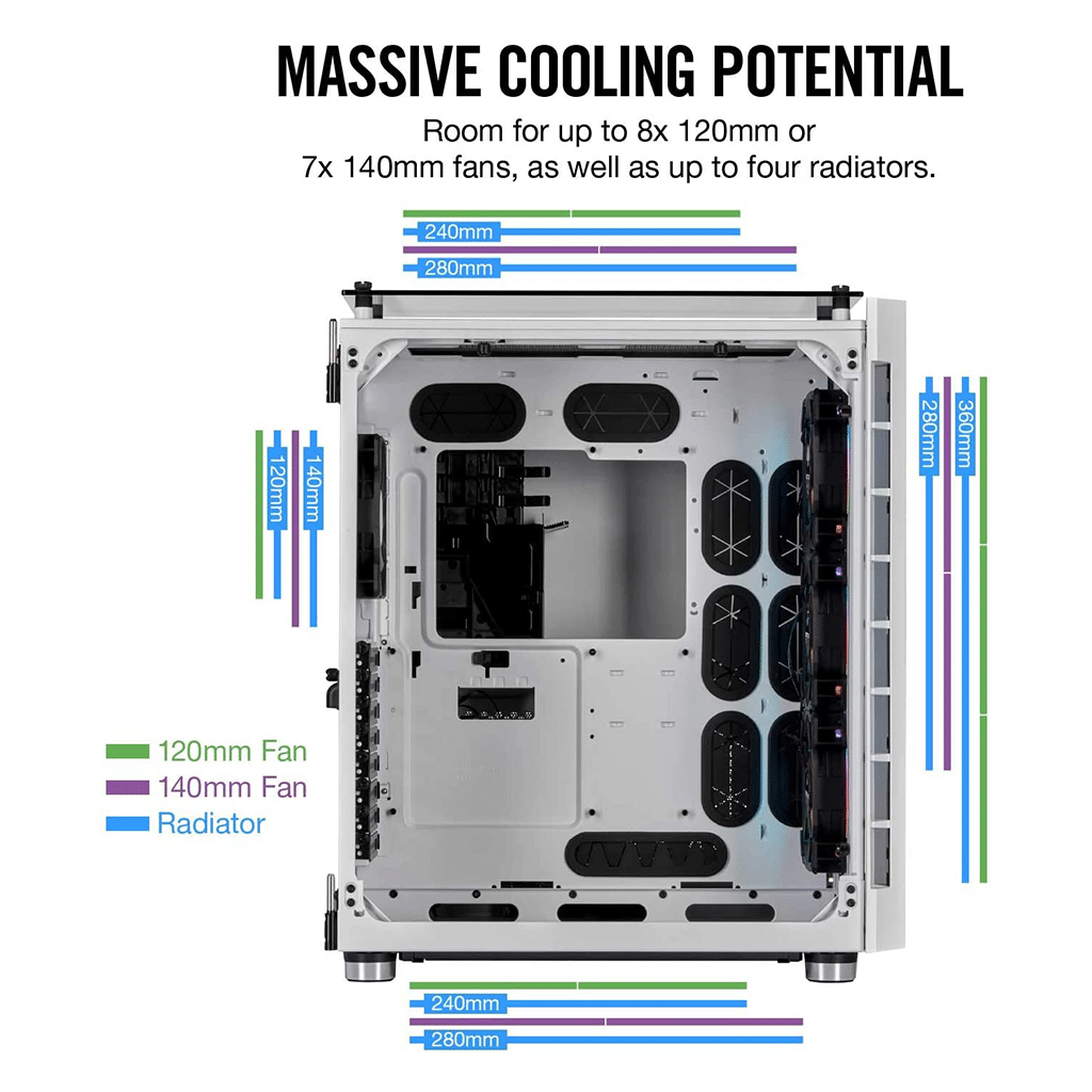 Four included 120mm cooling fans and a Direct Airflow Path layout deliver cool air to your PC’s hottest components.