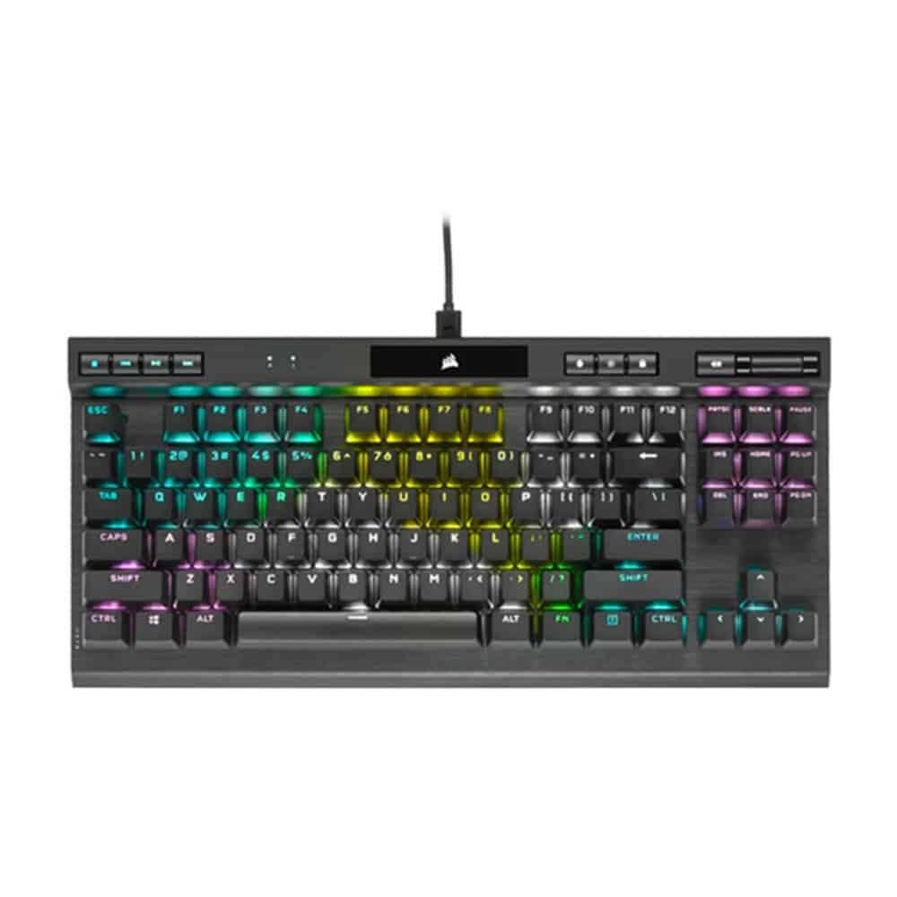 • CORSAIR CHAMPION SERIES products are designed for and tested by top esports professionals – helping to carry you to victory with a competition-grade keyboard featuring a portable and space-saving tenkeyless form-factor, a detachable USB Type-C cable, and a tournament mode switch.