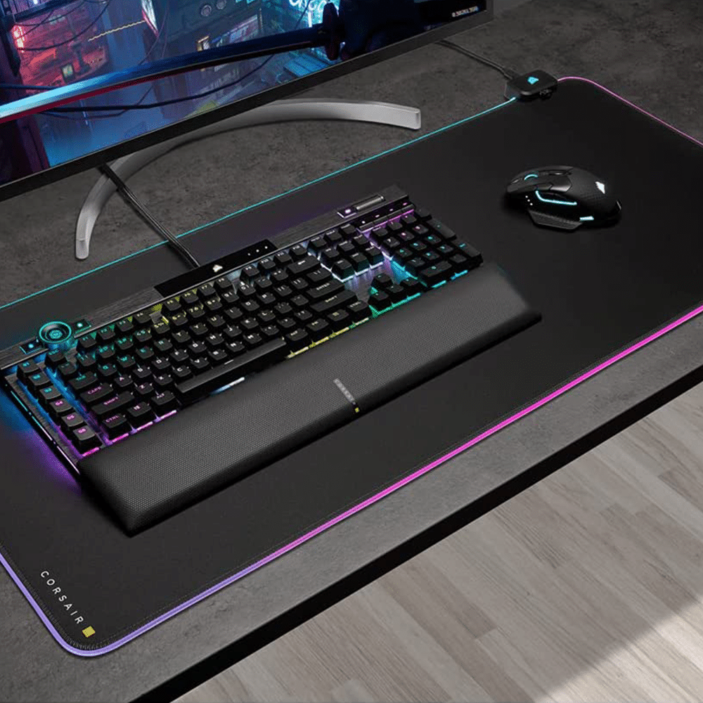 • Surround your gaming surface in 360° of dynamic, three-zone RGB lighting with direct onboard control or via CORSAIR iCUE software.