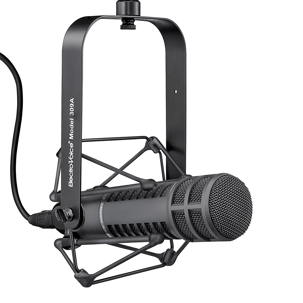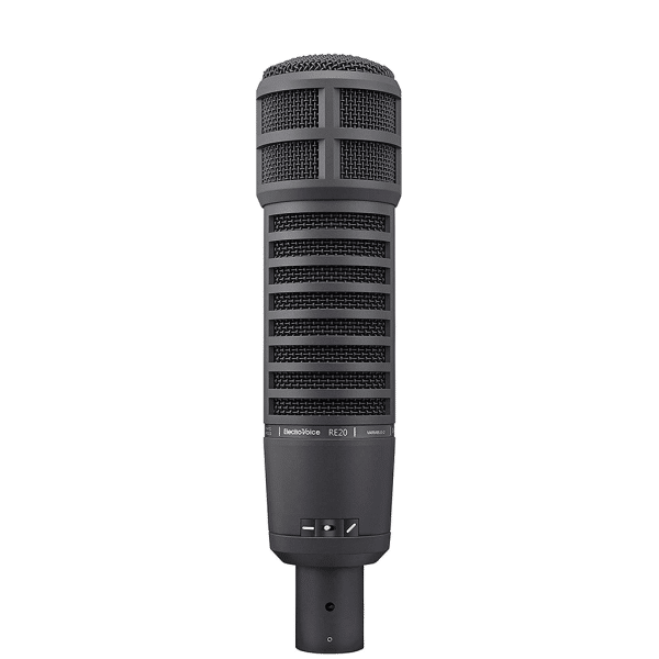 The RE20 dynamic cardioid microphone is truly an industry standard, a firm favorite among broadcasters and sound engineers worldwide. Its popularity also extends into music production as a premium grade instrument microphone. Its Variable-D design and heavy-duty internal pop filter excel for close-in voice work, while an internal element shock-mount reduces vibration-induced noise.