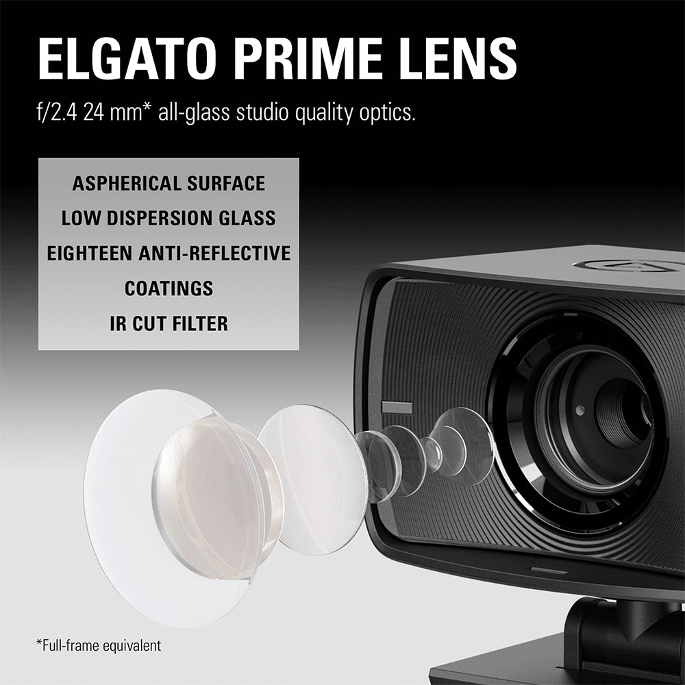 - Studio quality f/2.4 24 mm* all-glass Elgato Prime Lens