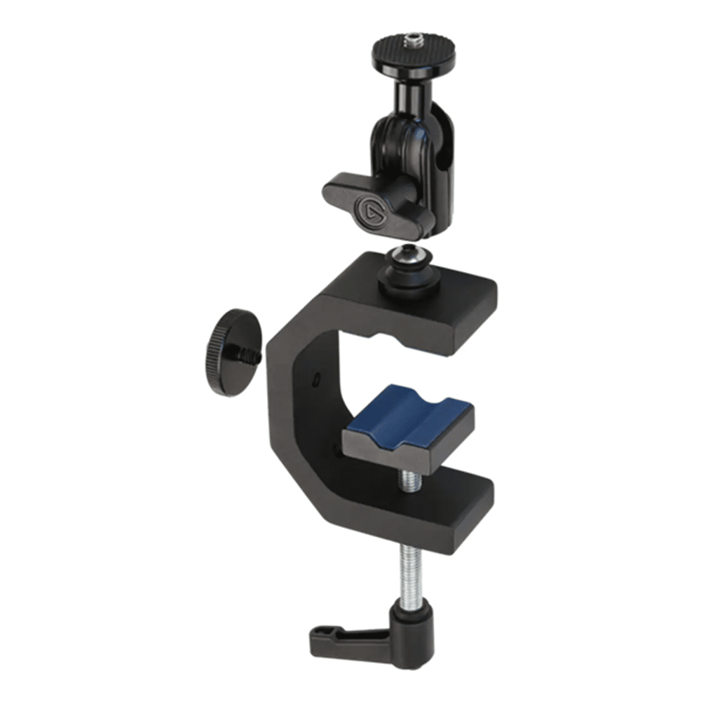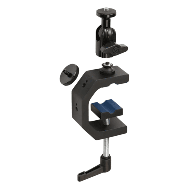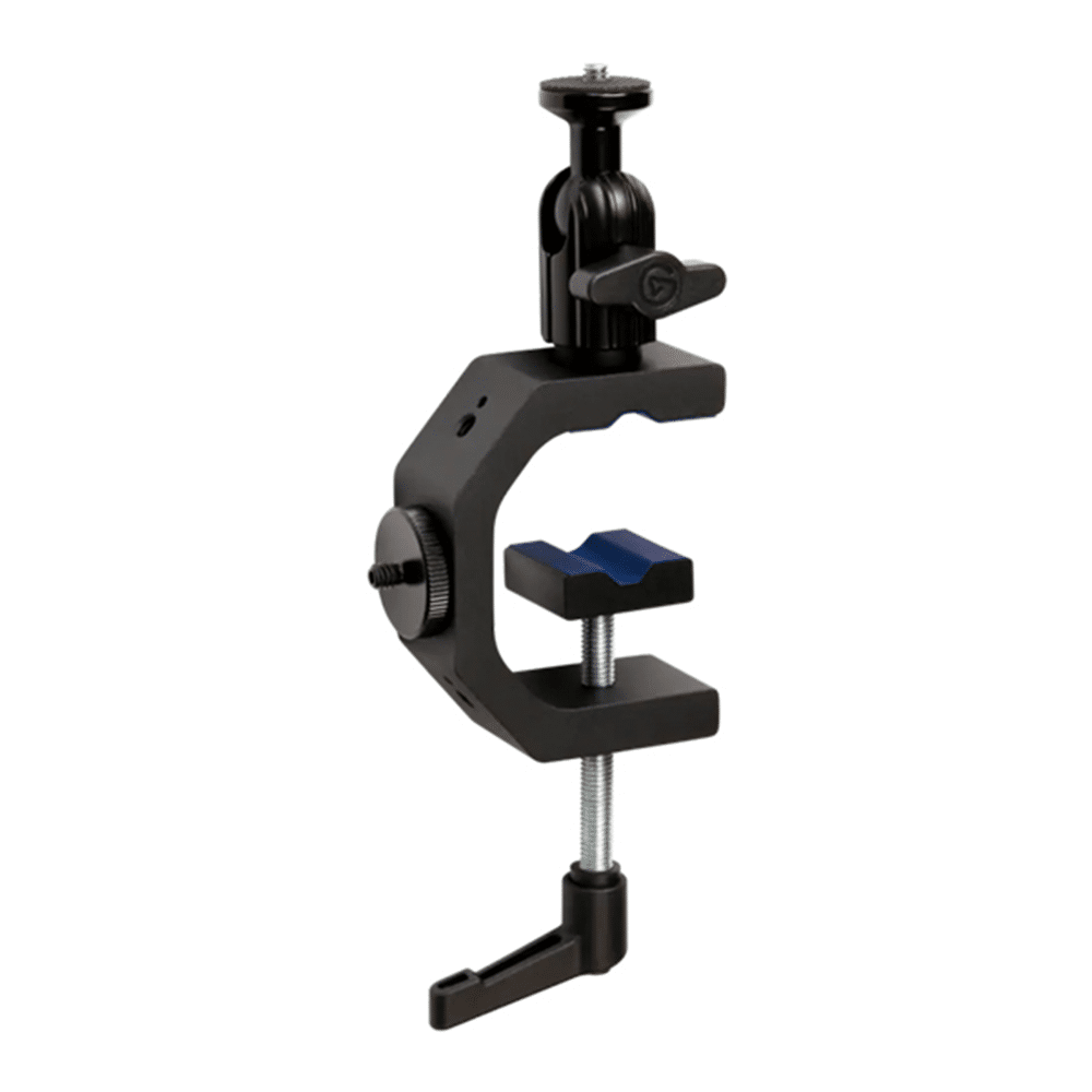 A heavy-duty G-Clamp with a ball head and four ¼-inch threads, Heavy Clamp lets you mount gear almost anywhere. Desks, shelves, poles, random objects. Look around. Use your environment to set the perfect lighting angle, mic placement, or overhead shot. The world is your studio. Technical Specifications CLAMP Jaw range: 0 - 53 mm / 0 - 2 in Mounting points: 4 X ¼" holes (threaded) BALL HEAD ¼" screw Max load: 1.5 kg / 3.5 lbs MATERIAL Heavy-Duty Aluminum, Steel, Hard Composite, Protective Rubber