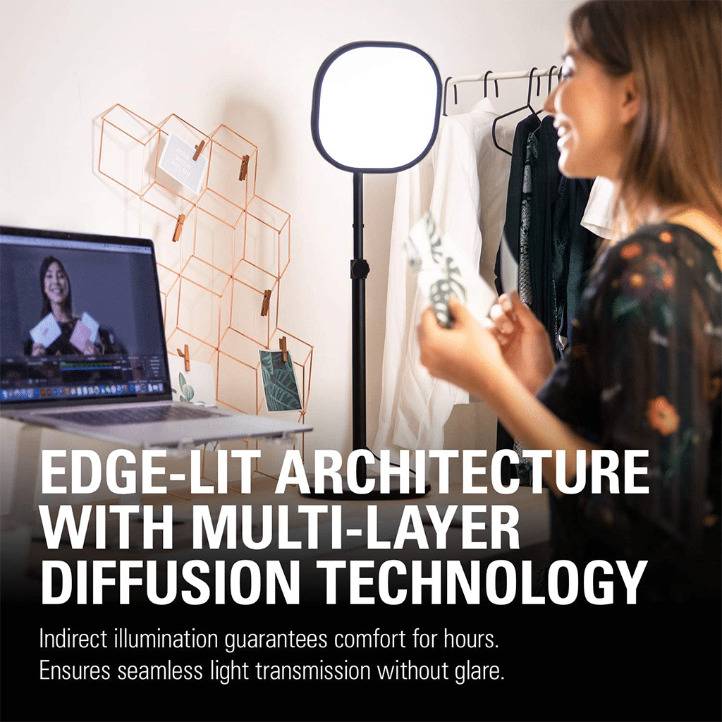 Key Light Air doesn’t only make you look professional. Edge-lit LED architecture coupled with multi-layer diffusion technology provides indirect, ultra-soft illumination. It’s gentle on your retina.