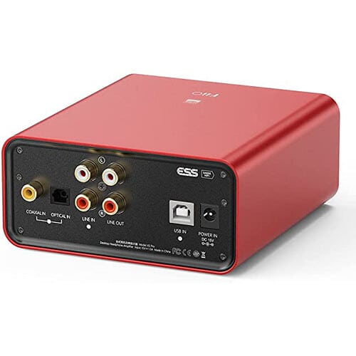 Aimed at audiophiles and music enthusiasts, the high-fidelity FiiO K5 Pro ESS, styled in red, is a compact desktop USB DAC and headphone amplifier designed to faithfully reproduce your music when listening to audio from your computer, smartphone/tablet, or other digital music player. The K5 Pro ESS improves on the K5 Pro by employing the high-resolution ES9038Q2M ESS DAC to deliver richer audio details and a superior performance at up to 768 kHz sampling rate and native DSD512. Compared to the last generation of this product, the distortion is reduced by 50%, the crosstalk for the line outputs has greater channel separation, and the dynamic range has increased by 3 dB.