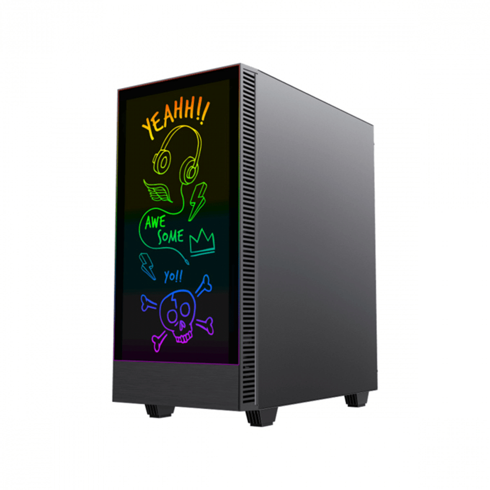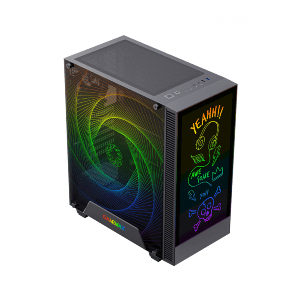 | Special Features | GameMax is proud to introduce Kreator Mid-Tower Computer Gaming Case. The Important feature is that users can easily DIY to write or erase letters or pictures or draw on the front glass The Front Glass with a backlit ARGB strip behind, will make the draw or letters you wrote by ARGB light in sync with the whole computer, Take you fresh mood to play computer in daily use Designed with a unique full ARGB light glass side panel, which can display various colors by HUB or Aura SYNC controlled, It is with an ARGB V3.0 PWM Fan controller and Remote Controller, It with the unique perfect effect that Sync light model in the dual glass surface. The Kreator can support up to 5 fans and comes with a 3pin ARGB header to connect directly to each fan or strip to HUB, allowing you to control your fans and LED strip via built-in firmware. The Kreator has a full-length PSU shroud, separated HDD bays, and plenty of cut-out holes for cable management means the case offers style, performance, and the ultimate experience, Kreator computer case, makes play different! |