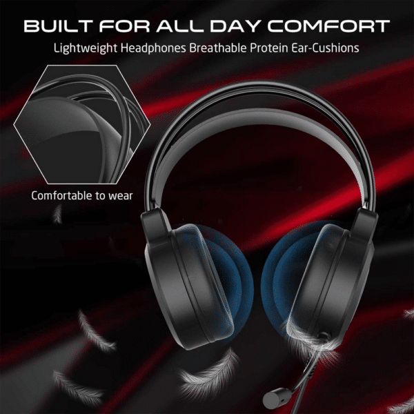 RGB Lighting for visual appeal: The headset's RGB lighting system isn't just about aesthetics; it's an immersive enhancement that elevates your experience by offering a wide array of colors and effects, adding a dynamic visual dimension to your gaming or entertainment setup. Noise Reduction Microphone for clear communication: This advanced microphone technology actively eliminates background noise, ensuring that your voice comes through crisp and clear in every conversation, whether you're strategizing with teammates in gaming or engaging in professional calls. Premium PU Leather Earmuffs for comfort: Crafted with premium PU leather, the earmuffs are designed for luxurious comfort during extended use. Not only do they provide a soft, plush feel, but they also contribute to a distraction-free experience by passively blocking out external noise.