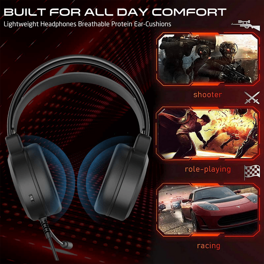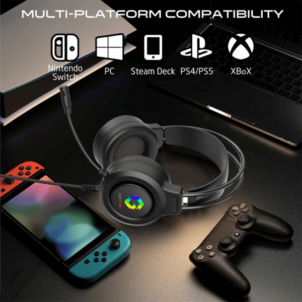 RGB Lighting for visual appeal: The headset's vibrant RGB lighting doesn't just enhance aesthetics; it creates an immersive atmosphere with its diverse color options and dynamic effects, elevating your gaming or entertainment experience to a whole new level. Noise Reduction Microphone for clear communication: Featuring cutting-edge noise reduction technology, the microphone ensures your voice remains crystal-clear by actively minimizing background noise, making it perfect for seamless communication during gaming or professional conversations. Premium PU Leather Earmuffs for comfort: Crafted from premium PU leather, the earmuffs provide a luxurious and comfortable fit, offering prolonged comfort during extended gaming or listening sessions while effectively blocking out external noise for an undisturbed experience.
