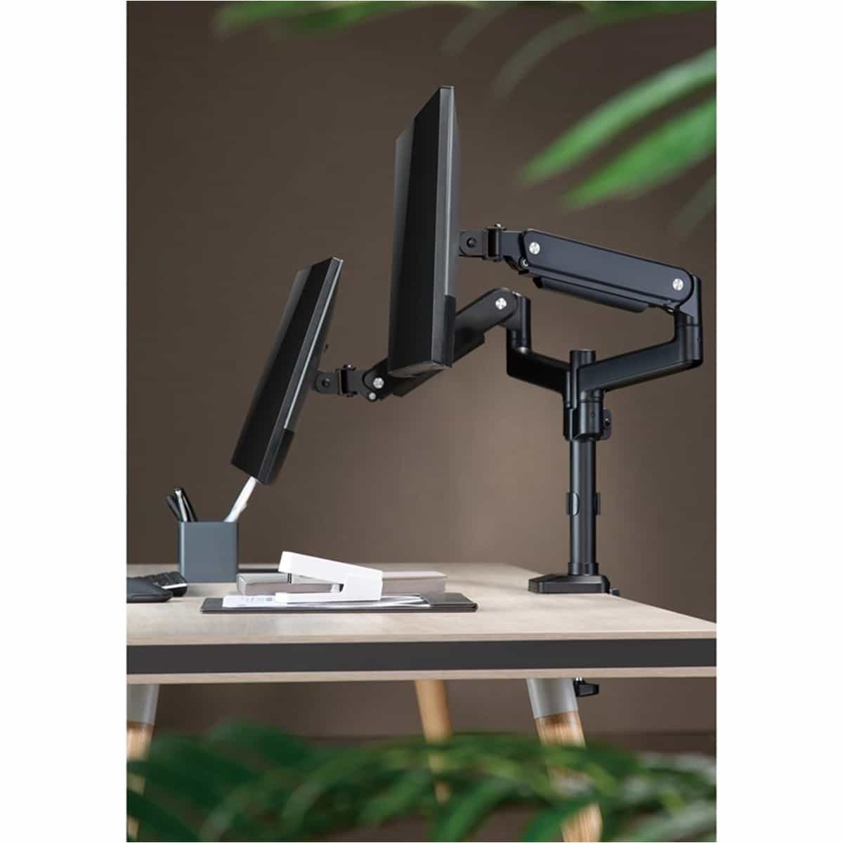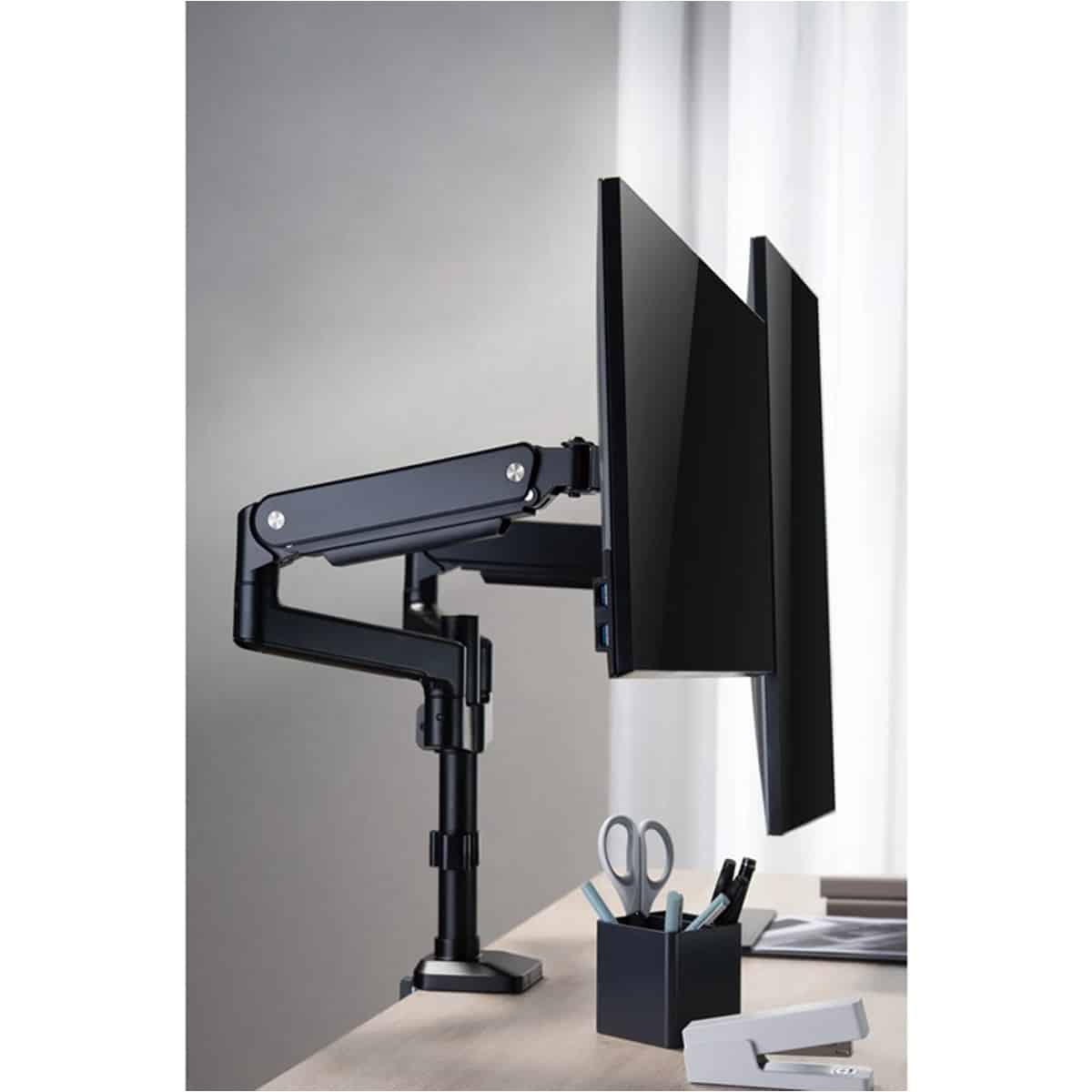 GAMEON Pole Mounted Gas Spring Dual Monitor Arm Stand And Mount For Gaming And Office Use (17″ – 32″) Each Arm Up To 9 KG – Black