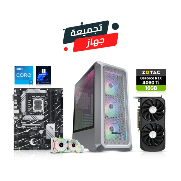 Gaming PC i5-14600K, Asus Intel Prime B760-Plus D5 MB, 16GB DDR5 (5600) RAM, 1TB NVMe SSD, Zotac RTX 4060 Ti 16GB VGA, GameOn L240 Liquid Cooler, 750W Gold PSU, Cougar Archon 2 Mesh RGB White Case, WiFi Adapter, Win 11 Pro