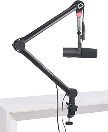 Gator Frameworks Deluxe Desk-Mounted Broadcast Microphone Boom Stand For Podcasts & Recording; Integrated XLR Cable and LED Light Indicator (GFWBCBM4000)