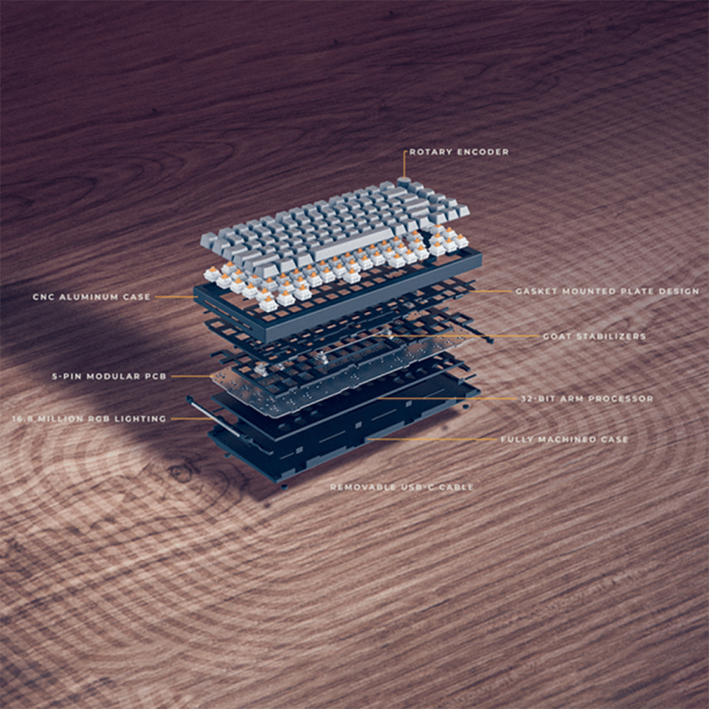 | Special Features | Award-winning modular mechanical keyboard with enthusiast components and unmatched build quality. Fully customizable to your perfect look, sound, and feel. The pre-built option includes a coiled cable, padded wrist rest, and customization tools. • 75% Keyboard w/ 82 Keys • Fully Customizable Aesthetics • 5-Pin Hotswap Switch Support • CNC Machined Aluminum Body • Vibrant Per-Key RGB Illumination • Programmable Rotary Knob |