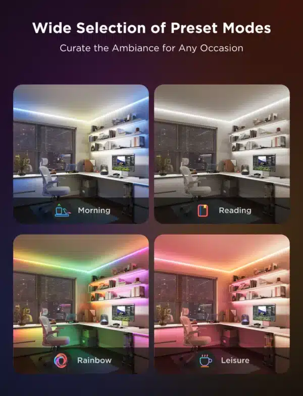 - RGBIC Lighting Effects: Independently control multiple colors on a single strip for stunning animations.