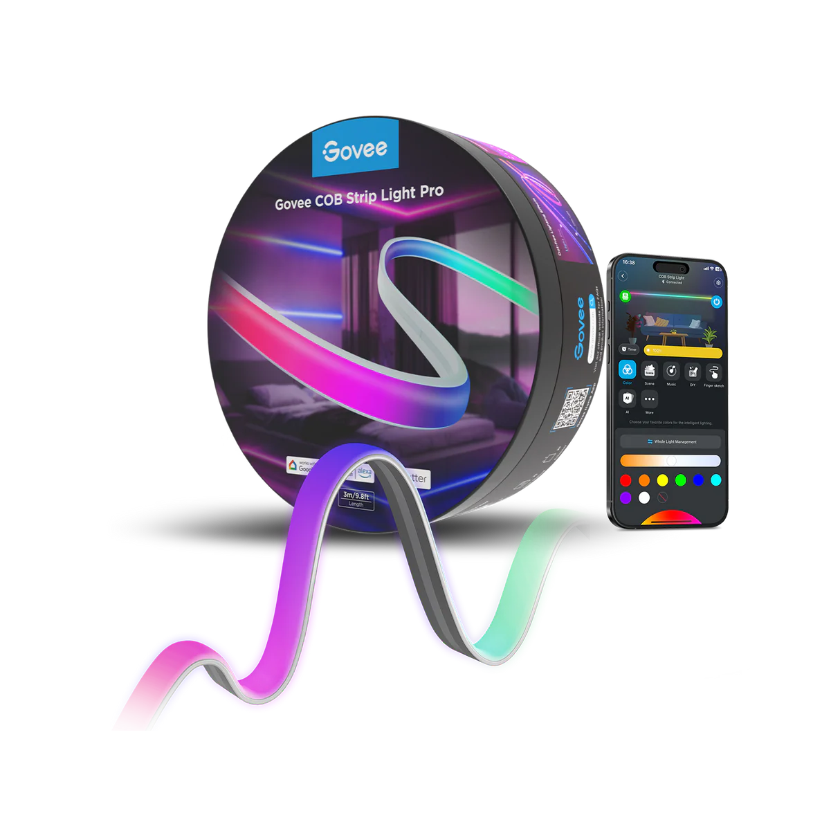 The Govee COB Strip Light Pro H61E5 delivers a premium, seamless lighting experience with COB (Chip-On-Board) technology for ultra-smooth illumination without visible LED dots. At 3 meters long, this smart strip is perfect for accent lighting in bedrooms, living rooms, gaming setups, and workspaces. With RGBIC effects, Wi-Fi control, and a flexible design, you can easily create the perfect atmosphere for any occasion.