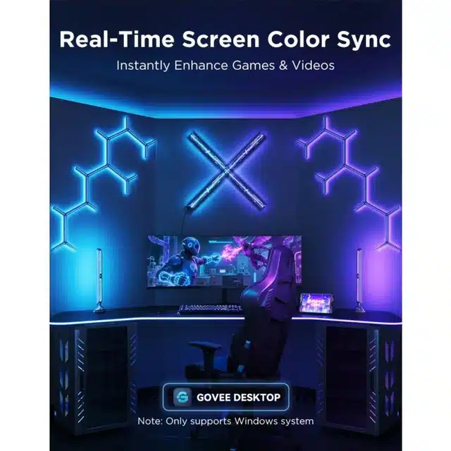 - Real-Time Screen Sync: Syncs lighting to screen content using Govee Desktop (Windows) or a Govee color-picking device.