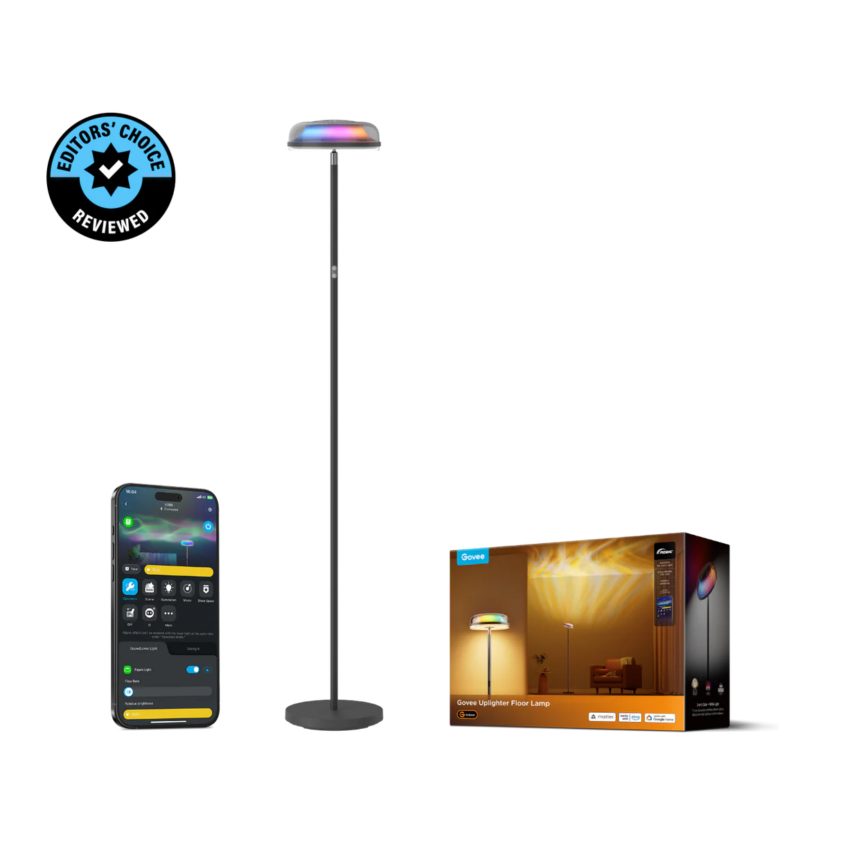 Home Products Smart Home Lighting Govee Uplighter Floor Lamp 3 in 1 Lighting Effects, Dynamic Ripple Effect, RGBWW+RGBIC+WW Colors – H60B0