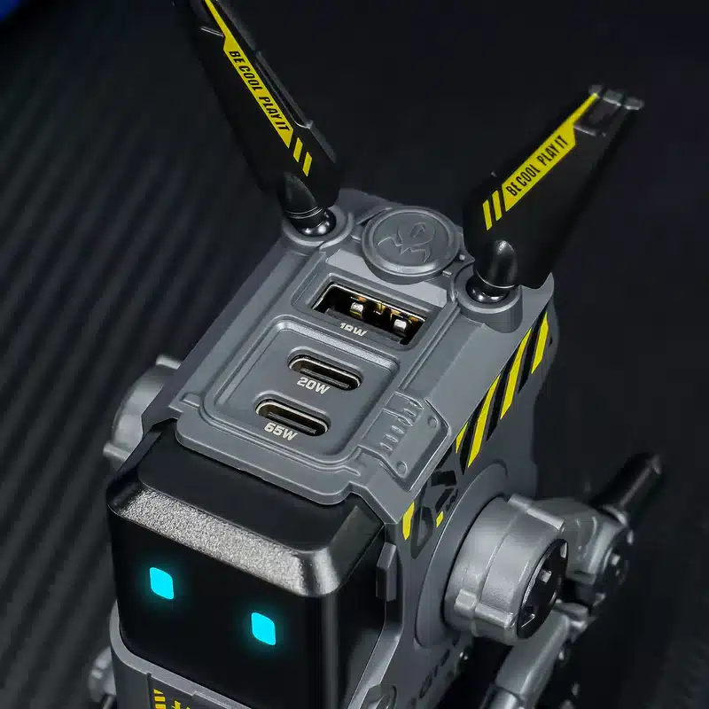 Even when it's not powering your devices, your Alpha65 is still the perfect little desktop companion. Once charging is completed, its mecha walker legs can be transformed from sitting to standing, and the power plug folds away into a concealed opening until it's needed again.