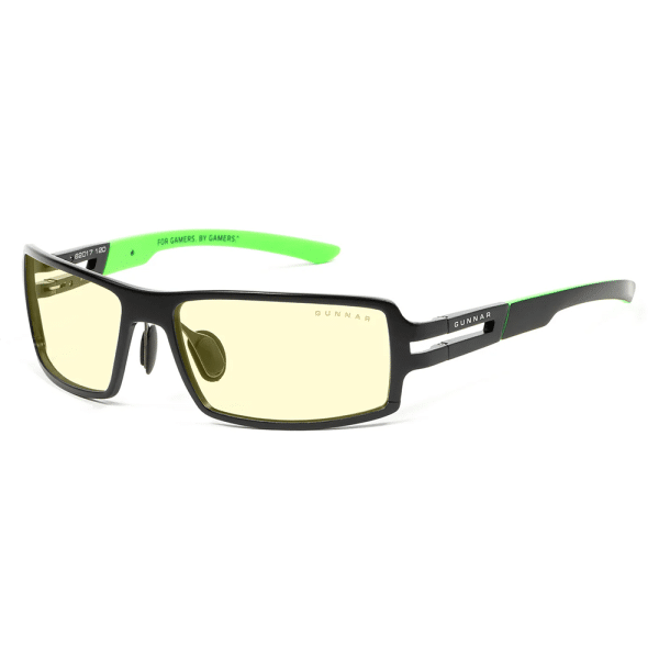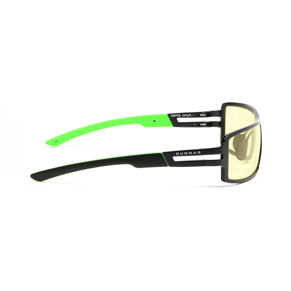 Help reduce the strain on your eyes caused by hours of intense gaming in front of the computer or TV with the onyx frame with amber lens tint GUNNAR Razer RPG Gaming Glasses.