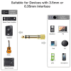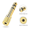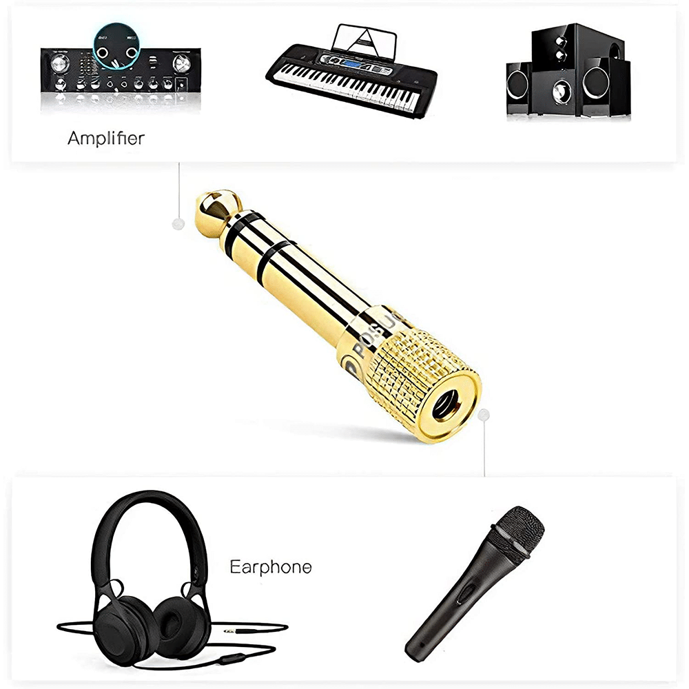 - Gold-plated Pure Copper: Minimized the signal loss and preserving the sound quality, and reduce tarnish and ensures minimal signal loss. - Increase Compatibility: Tested and inspected to meet all 6.35mm male to 3.5mm female plugs. - 360 degree grip treads help easy plugging and unplugging,mini size and portable.